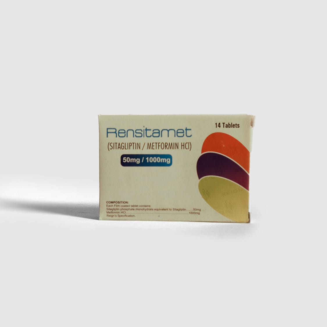 A fixed-dose combination of Sitagliptin (a DPP-4 inhibitor) and Metformin (a biguanide) used for the management of type 2 diabetes mellitus. Sitagliptin enhances incretin activity to increase insulin secretion and suppress glucagon, while Metformin decreases hepatic glucose production and improves insulin sensitivity.